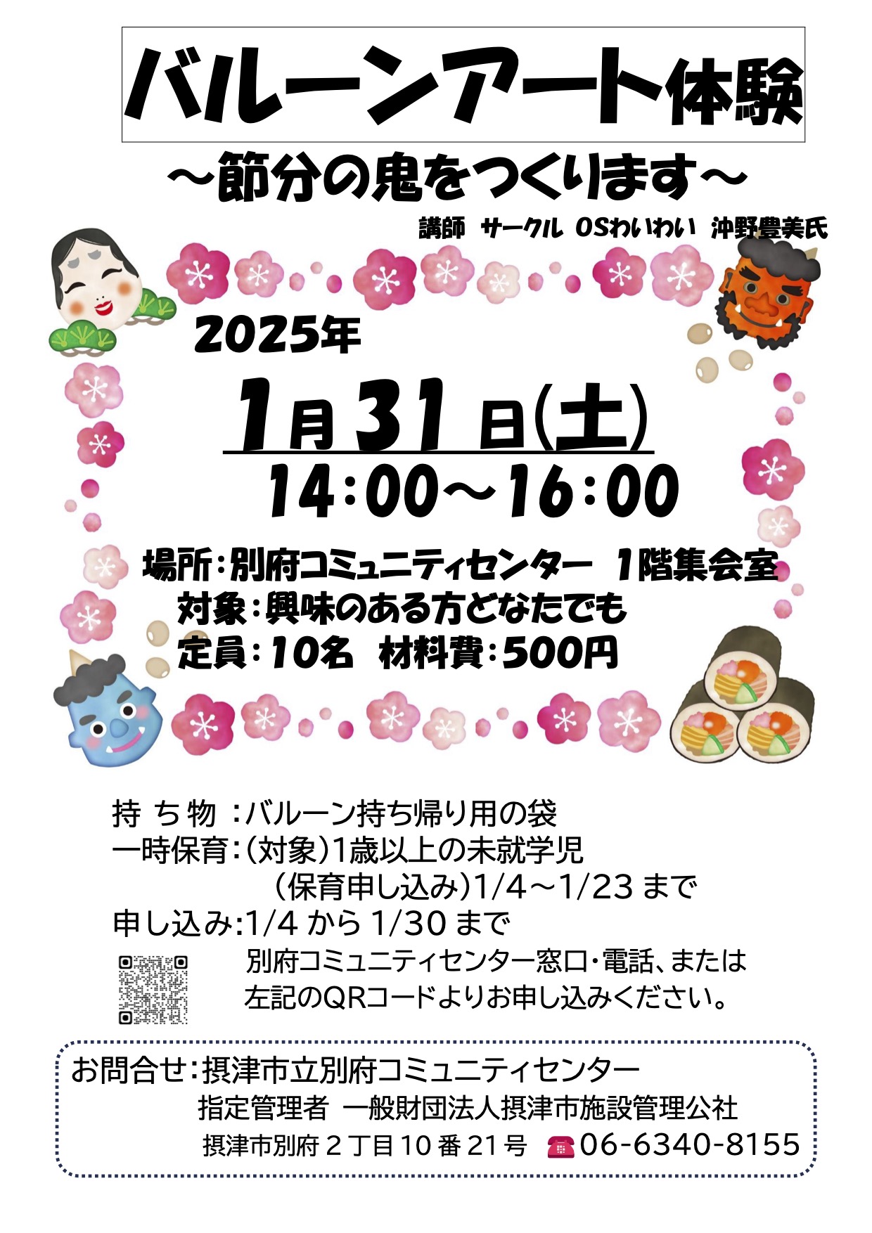 バルーンアート体験 ~②節分の鬼編~ 2026年1月31日(土) 14:00〜16:00