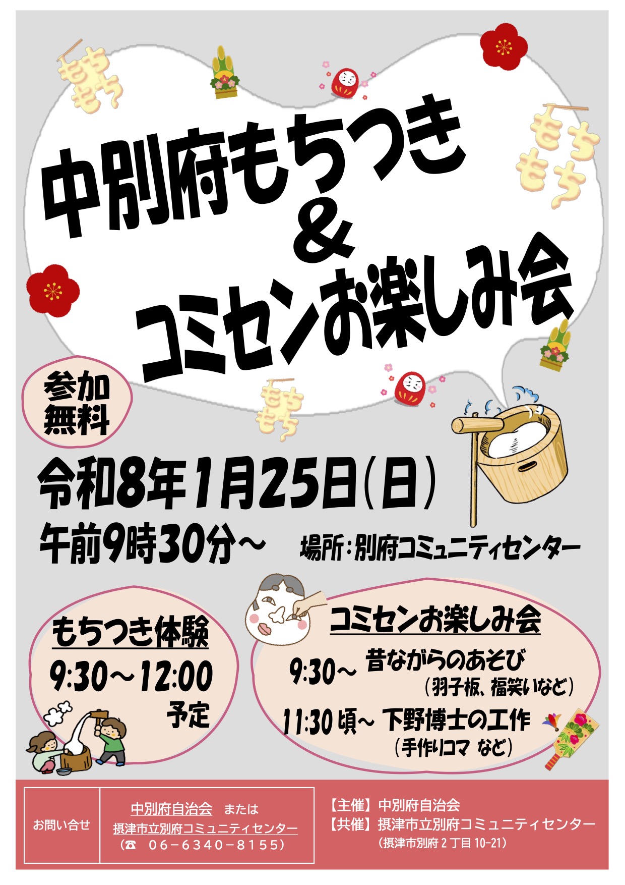 中別府もちつき&コミセンお楽しみ会 2026年1月25日(日) 9:30〜
